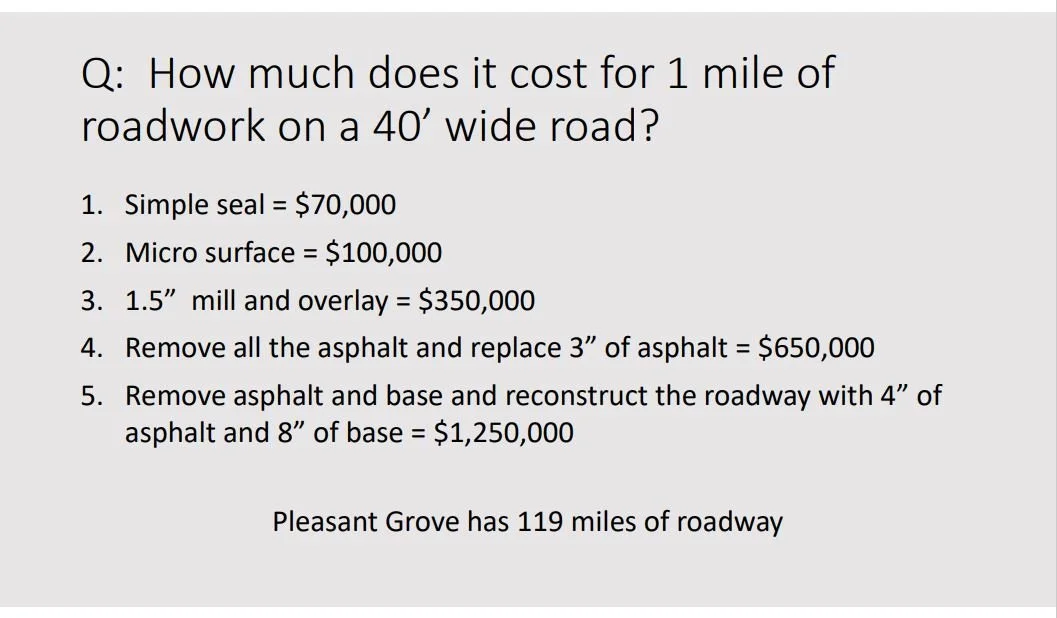 Below, Tale of two decades and moving forward, Pleasant Grove is dedicated more than any other city council to moving and doing more roads than ever. I will continue to improve our maintainable plan into the future.